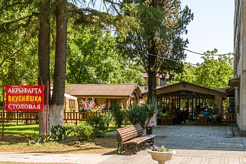 В 30 метрах от гостевого дома расположена столовая «Вкусняшка», готовят вкусно, недорого, с акцентом на кавказские блюда, причем размеры порций поражают воображение.